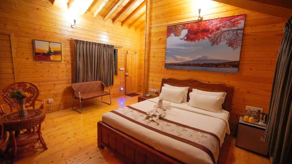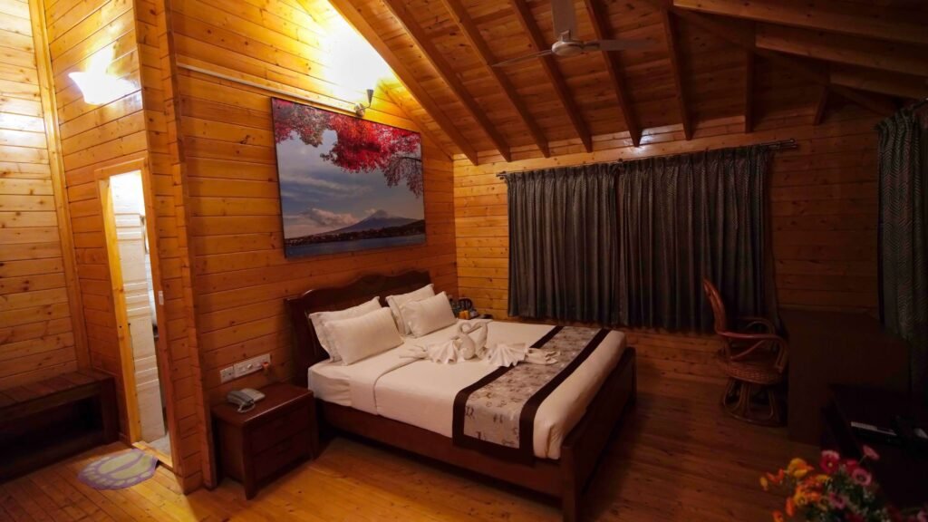 To provide our guests with an authentic feel of living among nature, we have designed the Wooden House. This wooden house in Bangalore, as the name suggests, is built with wooden interiors and furnished with modern amenities that ensure a comfortable and luxurious stay for our guests at our resort near Kolar – GK Hill View Resorts.